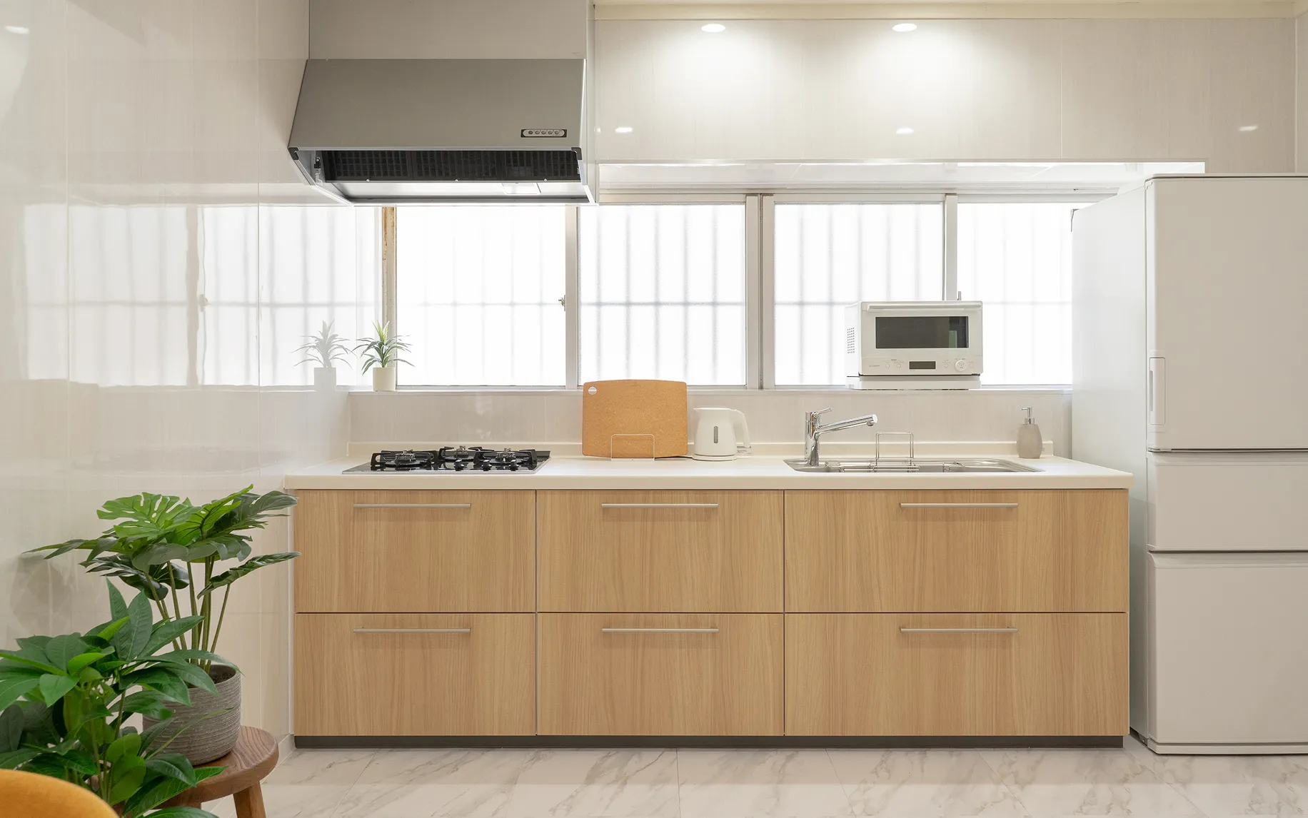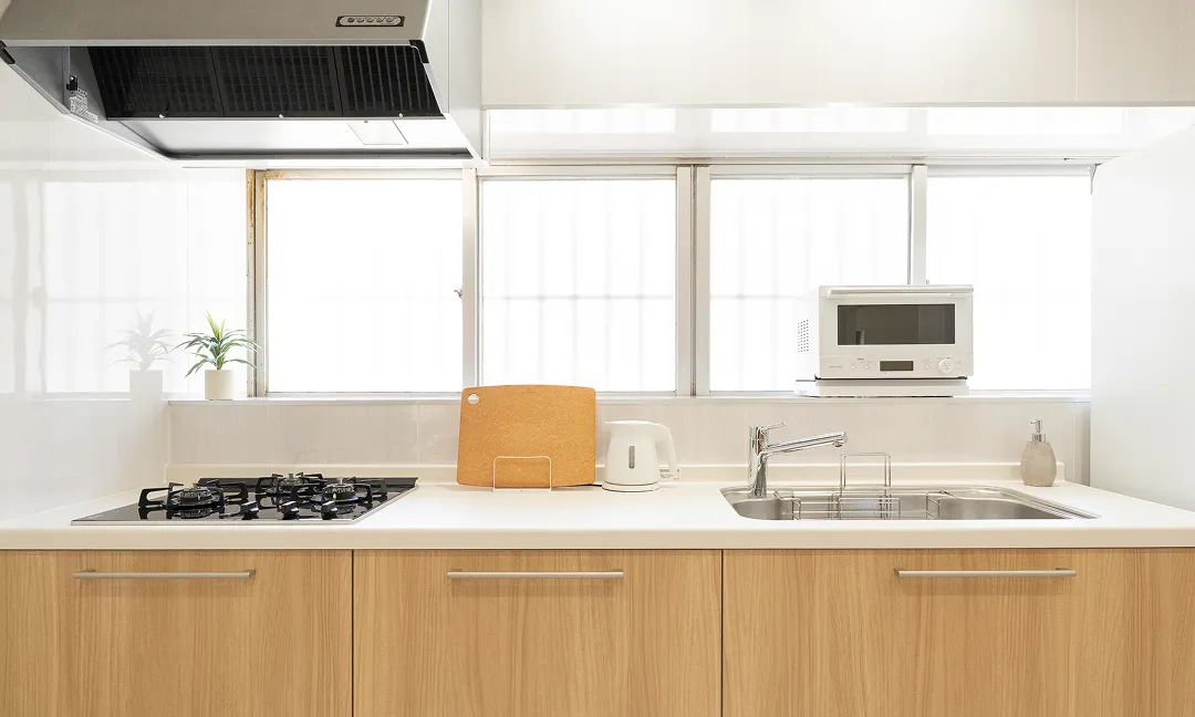 洗濯機・乾燥機・システムキッチンなど、暮らしに必要な設備をすべて完備。調理器具や食器類も揃っており、旅先でも自分らしいライフスタイルを崩さず過ごせます。長期滞在やワーケーションにも最適です。