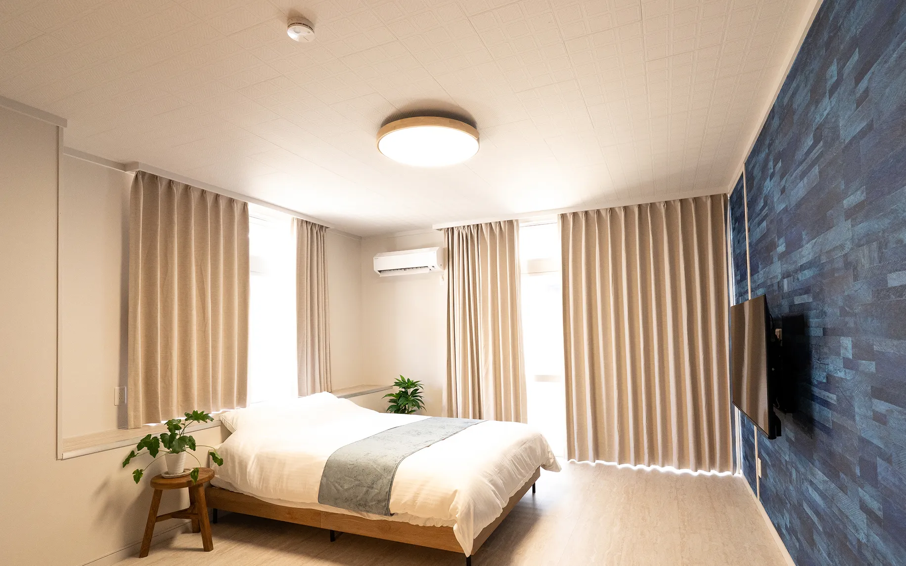 全室冷暖房、無料Wi-Fi、洗浄機能付きトイレなど、見えない快適さにもこだわりを。敷地内の無料駐車場(4台)は予約不要で、レンタカーでの滞在もスムーズにサポートします。